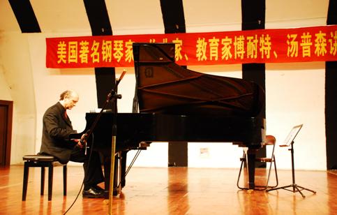钢琴家博耐特·汤普森,曾为美国国家室内乐团谱写协奏曲,多年来为多家乐团担任钢琴独奏,为多部著名无声电影配乐。他对中国音乐也情有独钟,曾多次和中国的二胡演奏家马晓晖在中国、加拿大和美国同台演出。此次是他第六次访问中国,在沈阳、大连、武汉和上海讲座演出。