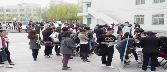随着招聘会的开始,清风轻抚,招聘会现场一片祥和的景象……。