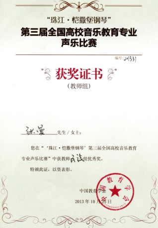 张曼获奖证书