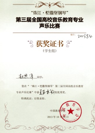 赵恩泽获奖证书