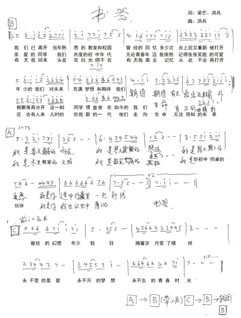 作品《书签》简谱