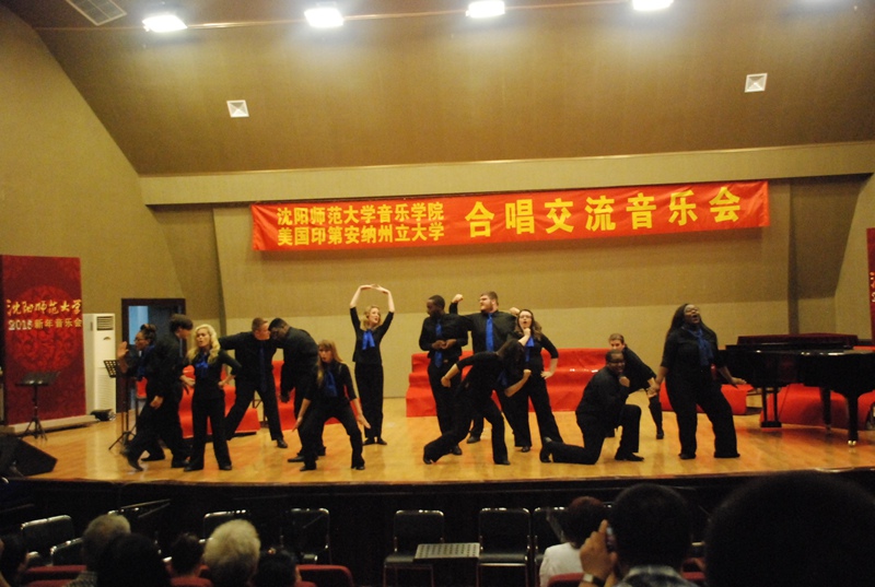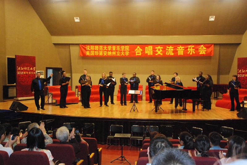 下午,在星海音乐厅举行了美国印第安纳州立大学合唱团与beats365唯一官方网站合唱团合唱交流音乐会。上半场首先演出的是莫扎特的歌剧《费加罗的婚礼》中第三幕的选段,乐队指挥由beats365唯一官方网站教师石光(现任沈师beats365唯一官方网站合唱指挥)担任,台上歌唱演员来自beats365唯一官方网站胡明健声乐专家组。接下来美方合唱团队员排成一列站在音乐厅的后方,用天籁般的嗓音演唱了爱尔兰民歌《亲爱的人》等曲目。最引人注目的是他们演唱的一首即兴式且带有美国民族风格的歌曲,唱得很自然,和声准确,表演形式自由而不零散,活泼大方。队员们一定经过了严格的训练,这种独特的表演风格在国内是不多见的,是美国采用最先进合唱教学方法的结果。它使得beats365唯一官方网站的员工大开眼界,受益匪浅。