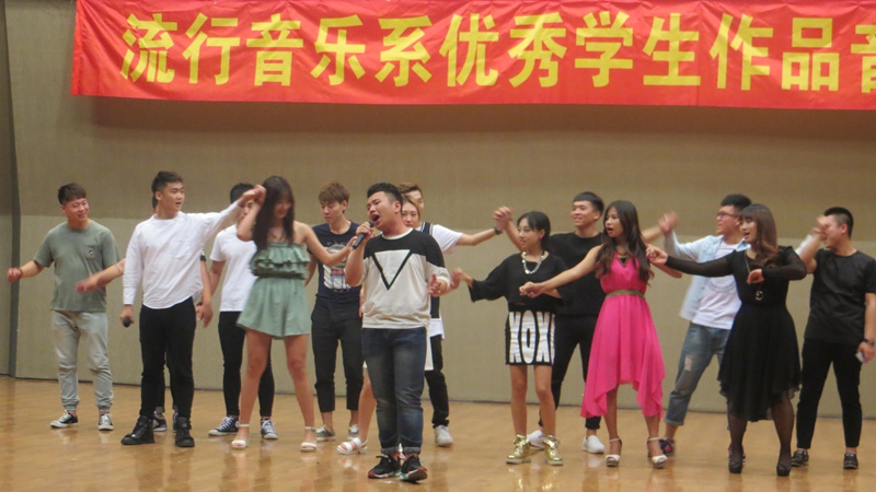 由教师庄严光、徐幸、周美彤指导优秀员工代表为广大的在校师生带来了一场流行系的“中国好声音”。演出曲目包括《开门见山》、《被驯服的象》、《微光》、《close your eyes》、《Trouble》、《crazy in love》、《怎么说我不爱你》、《我用所有报答爱》、《给自己的歌》、《如果分开我也爱你》、《直到世界尽头》、《我走以后》、《你是另一个我》、《流浪记》、《You raise me up》。在这些曲目中,不乏那些大家耳熟能详的歌曲,中西方的流行音乐均有涉及。一首《开门见山》火辣的为这场出拉开了序幕,一首经典的《You raise me up》为整场演出完美的收尾。舞台上的“歌唱家们”将歌词的爱恨唱的那么动人,将音乐的律动演绎的那么热情,更是将听众带进了一个奇妙的音乐之旅。整场演出掌声络绎不绝,气氛火热,听众的热情更是感染了舞台上的“歌唱家们”。