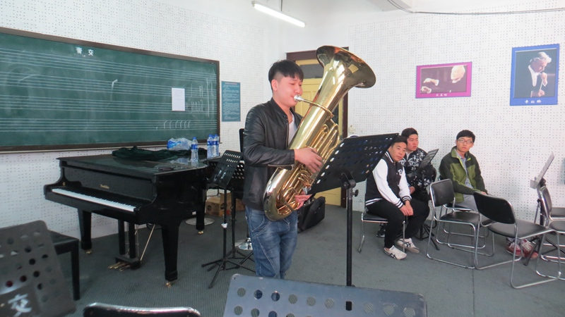 招聘会现场,先由张政委对本次招聘情况进行介绍、说明,并将相关的政策详细的进行了解读,宣讲会结束后,招聘会正式开始,管弦专业2016届毕业生分别就自己所学专业进行了展示,得到了海军军乐团老师的一致好评。