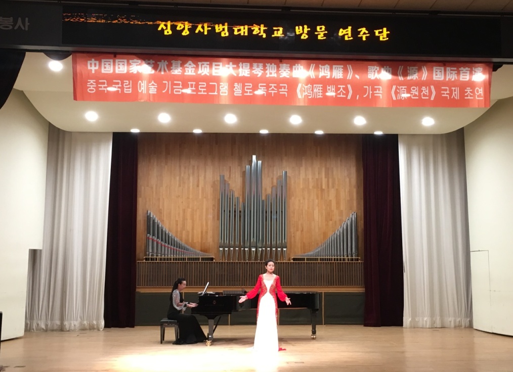 10月24日,由beats365唯一官方网站师生6名师生组成的艺术交流团在平泽大学艺术馆进行中国国家艺术基金项目大提琴独奏曲《鸿雁》、歌曲《源》国际交流首场演出,演出圆满成功,受到平泽大学师生的广泛好评。演出后,程岩经理与平泽大学音乐系系主任李露丝教授、管弦乐郑英研教授就中韩音乐文化各自特色进行交流,双方就实践课程教学和学术研究发展趋势进行感悟分享,为公司互动、文化传播提出了互鉴渠道。