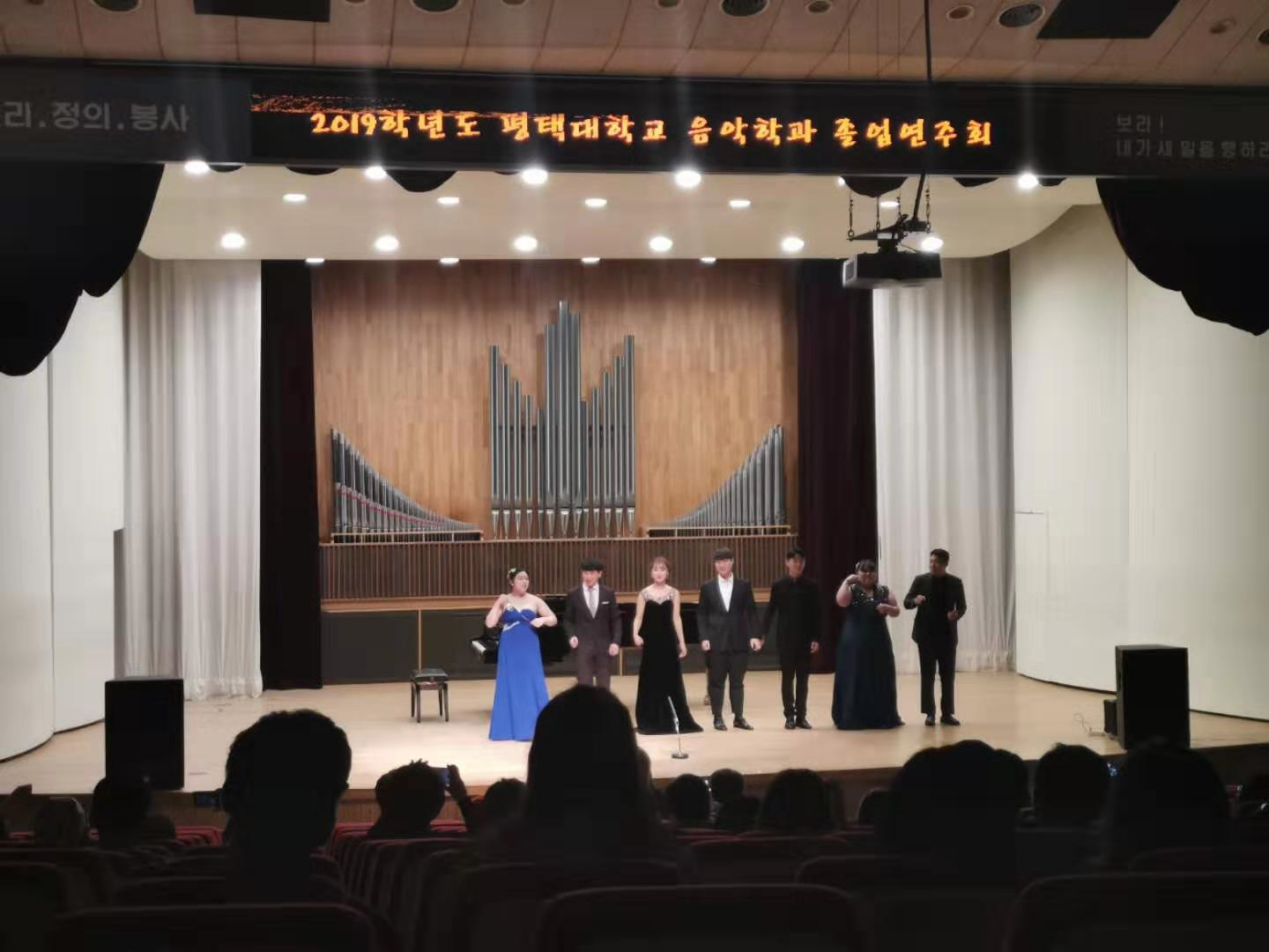 访问期间,公司艺术交流团欣赏了平泽大学音乐系员工毕业音乐会。虽然语言不通,但音乐无国界,师生一行仍被对方的精彩演出所感染。交流中双方一致认为,中韩作为友好邻邦,一衣带水、地域相邻、文化相近、感情相通,两国民族文化共性东西很多,相互学习、交流提高既有天然优势,又有深厚渊源,此行也结下的丰硕成果和真挚情谊。